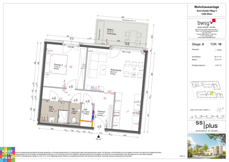 Ein Tiefgaragenplatz kann zusätzlich um € 29.202,45,- erworben werden. Begrenzte Stückzahl vorhanden!