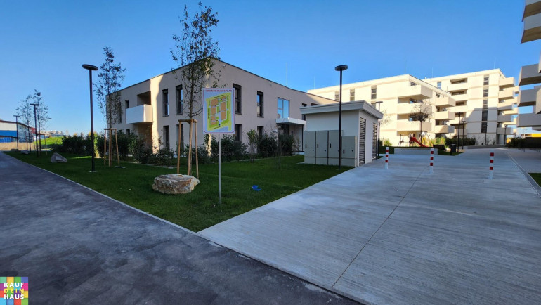 Die Wohnhausanlage setzt sich aus vier Gebäudeblöcken mit unterschiedlichen Höhen zusammen. Sie zeichnet sich durch geräumige Wohnungsgrundrisse und großzügige Freiflächen aus. Es gibt eine Garage, Einlagerungsräume, Kinderwagen- und Fahrradräume, einen geräumigen Gemeinschaftsraum für Ihre Partys sowie hauseigene Spielplätze.