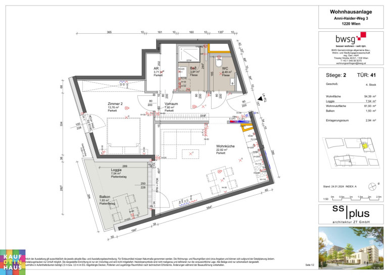 Ein Tiefgaragenplatz kann zusätzlich um € 29.202,45,- erworben werden. Begrenzte Stückzahl vorhanden!