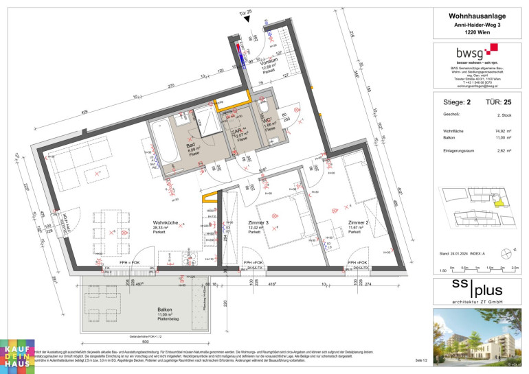 Ein Tiefgaragenplatz kann zusätzlich um € 29.202,45,- erworben werden. Begrenzte Stückzahl vorhanden!
