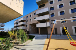 Die Wohnhausanlage setzt sich aus vier Gebäudeblöcken mit unterschiedlichen Höhen zusammen. Sie zeichnet sich durch geräumige Wohnungsgrundrisse und großzügige Freiflächen aus. Es gibt eine Garage, Einlagerungsräume, Kinderwagen- und Fahrradräume, einen geräumigen Gemeinschaftsraum für Ihre Partys sowie hauseigene Spielplätze.