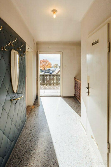Eingangsbereich (Garderobe) geräumige Wohnküche, zwei Zimmer, Bad mit Wanne, WC, Abstellraum.
