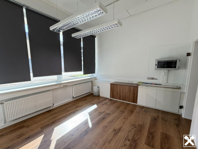 Dank neuer Böden, Türen, Elektrik und bestehender IT-Infrastruktur sowie Sonnenschutz bieten Sie sich und Ihren Mitarbeitern modernen, adäquaten Raum zum Arbeiten und Empfangen von Kunden - Klimaanlage & elektrische Rollos inklusive! Geheizt wird kostengünstig via Infrarotpanele, da mitunter eines Tages die Fernwärme als Quelle dient, sind die (modernisierten) Heizkörper nicht deinstalliert worden!