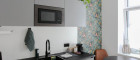 Im Wohnbereich sind hochwertige Parkettböden verlegt, während die Badezimmer mit edlen 60x60 cm Marazzi-Fliesen und bodengleichen Walk-in-Duschen ein exklusives Ambiente schaffen. Die modernen Küchenzeilen sind mit Induktionskochfeld, Mikrowelle, Kühlschrank sowie einer Design-Spüle mit schwarzen Armaturen ausgestattet.