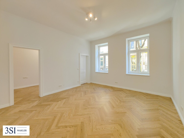 Zum Verkauf gelangt eine stilvoll sanierte 2-Zimmer-Altbauwohnung mit einer Wohnfläche von ca. 55m² im Erdgeschoss.