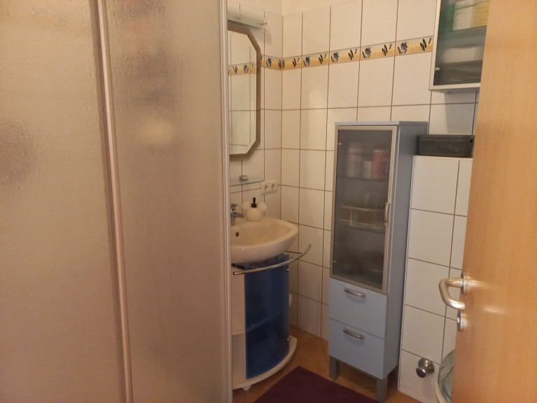 - Der Kellerraum ist gefliest und verfügt wie das ganze Haus über eine Fußbodenheizung. Weiters ist eine Dusche, ein Waschbecken und ein Starkstromanschluss vorhanden. Ideal für die Nutzung als Sportraum.