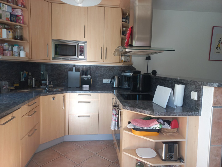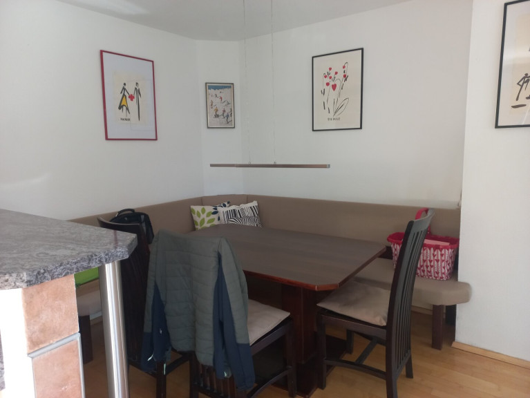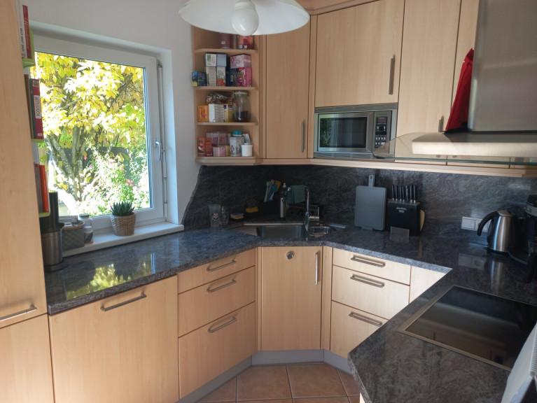 - Einbaumöbel (Schlafzimmer, Küche, Garderobe, Badezimmer) und die Essecke sind vom Tischler gefertigt