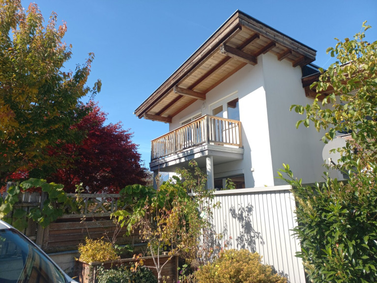 Das zum Verkauf stehende Einfamilienhaus in Doppelbauweise besticht durch seine moderne Raumaufteilung, die großzügigen Balkon- und Terrassenflächen, dem liebevoll gepflegten und sonnigen Garten, sowie einer Doppelgarage für 2 Fahrzeuge, zusätzlich 2 Abstellplätze vor der Garage, sowie einem Autoabstellplatz im Freien im nord-westlichen Bereich des Grundstücks.