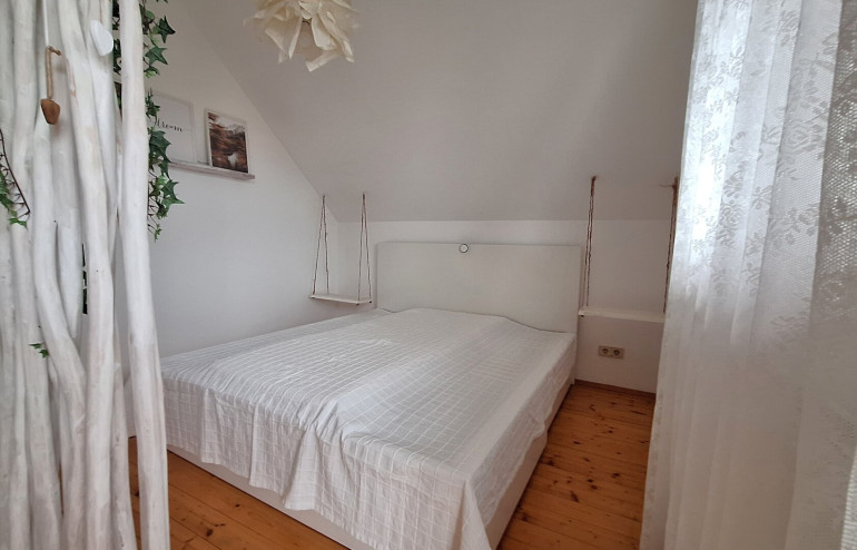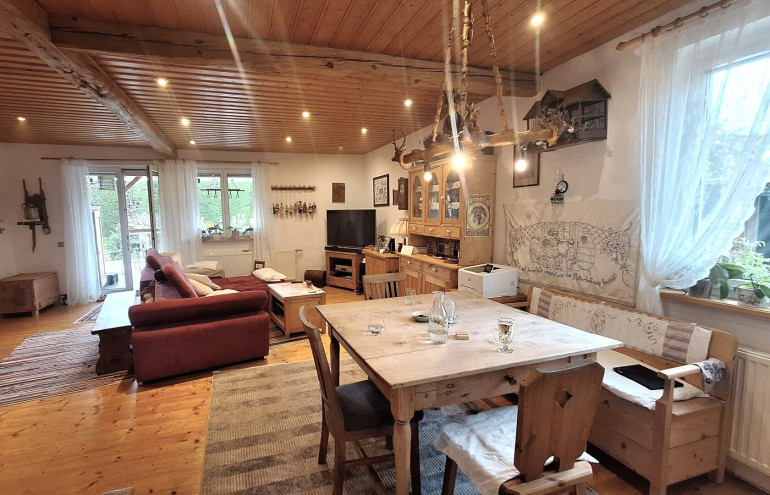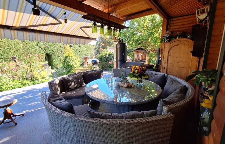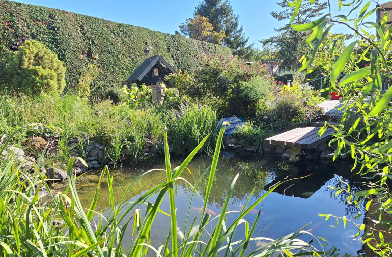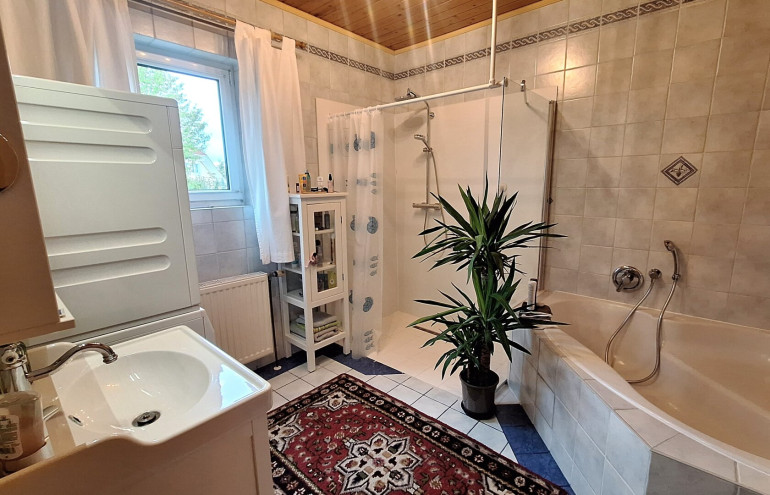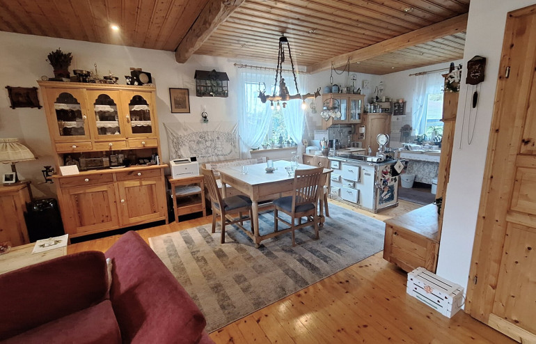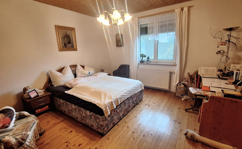 Das Haus wurde 1981 in Massivbauweise errichtet und 2005 vollständig saniert sowie das Dachgeschoß ausgebaut. Im Erdgeschoß (97 m²) und im Obergeschoß (72 m²) stehen 2 vollständige Wohnungen jeweils mit Küche, Badezimmer und je 2 Schlafräumen zur Verfügung. Mit wenig Aufwand können im Obergeschoß bis zu 4 Zimmer mit Duschbad eingerichtet werden. Das Haus ist vollständig unterkellert. Weiters stehen eine Garage und ein Carport zur Verfügung. Das Highlight ist eine große Süd-Terrasse, die mit einer Markise sehr gut beschattet werden kann. Von hier aus genießen Sie einen wunderbaren Blick auf ein ganz besonderes Gartenparadies, das die Eigentümer hier in den letzten Jahren geschaffen haben. Blickfang ist ein Fischteich verbunden mit einem plätschernden Wasserlauf und ein Meer an Blumen. Gleichzeitig ist ein Teil des Grundstücks abgegrenzt und Spaß und Spiel vorbehalten. Die Innenräume sind mit Holzfußböden ausgestattet und strahlen ein behagliches Wohngefühl aus.