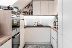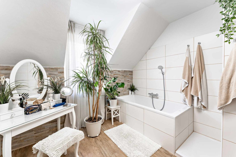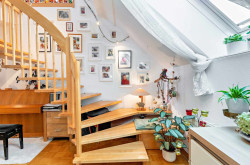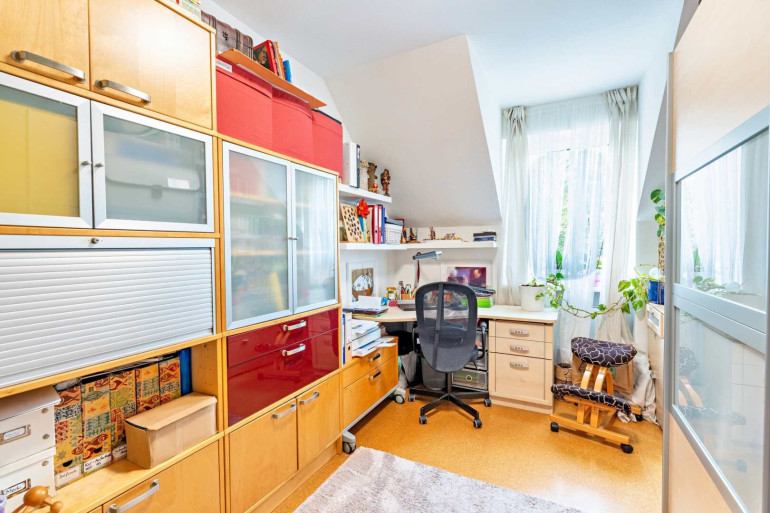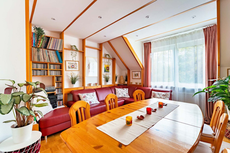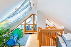 Über eine Holztreppe erreicht man den ausgebauten Spitzboden, der derzeit als Lounge- bzw. zusätzlicher Wohnbereich genutzt wird. Von hier aus betritt man die großzügige Dachterrasse – ein privater Rückzugsort über den Dächern von Graz mit Westausrichtung.