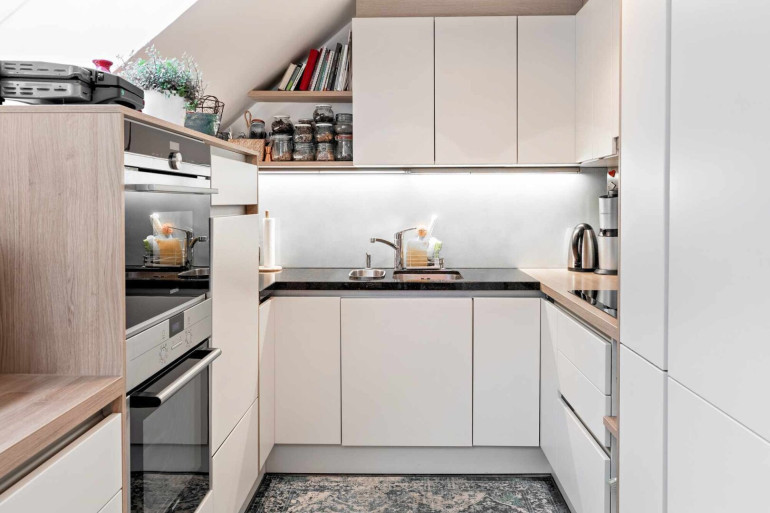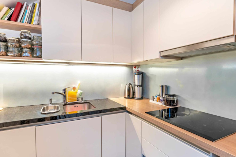 Zur Wohnung gehört auch ein ca. 11 m² großes Kellerabteil. Das fix verbaute Mobiliar, insbesondere Küche und maßgefertigte Einbauten, ist im Kaufpreis enthalten.