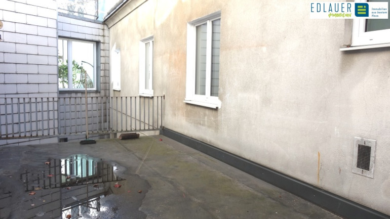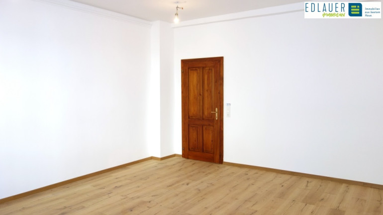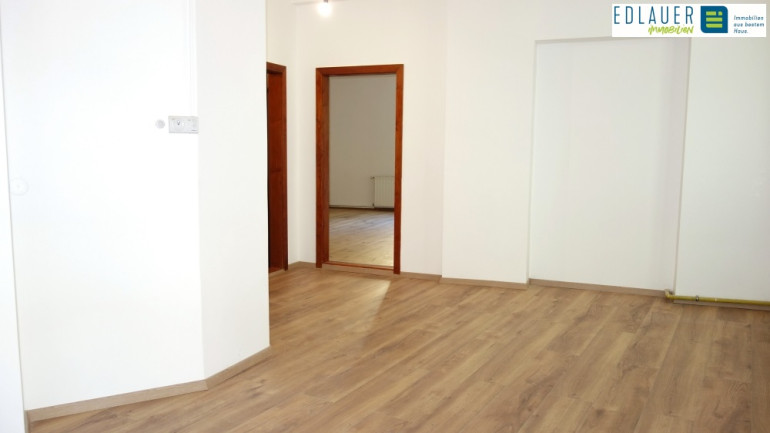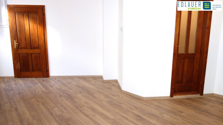 Die im 1. Obergeschoß befindliche Mietwohnung besitzt eine Gesamtnutzfläche von ca. 112 m² und gliedert sich in: Vorzimmer, Wohnzimmer, Schlafzimmer, Küche, 2 Abstellräume, Terrasse und Badezimmer mit WC.