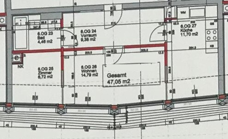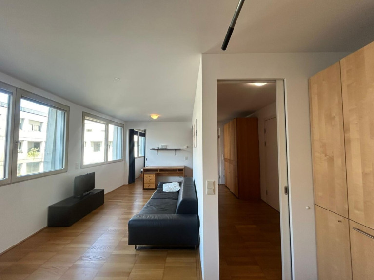 Wohnzimmer mit offener Küche, Schlafzimmer, Vorzimmer,