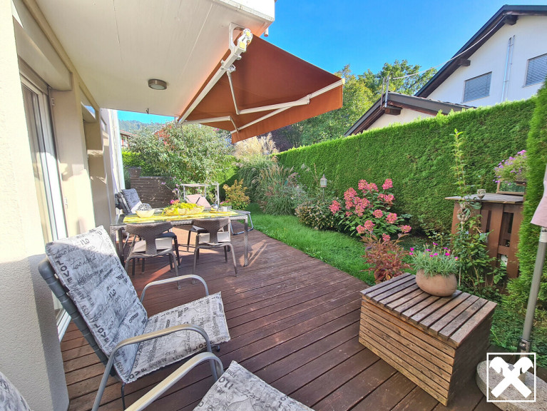 • Schöner Gartenanteil mit ca. 146m², überdachter Terrasse und Carport