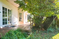 Der Garten ist großzügig angelegt und vermittelt das Gefühl eines privaten Parks. Eingewachsene Sträucher, alte Bäume und gepflegte Rasenflächen schaffen ein harmonisches Gesamtbild. Die Terrasse vor dem Wohnbereich lädt zu entspannten Stunden im Freien ein, während die weitläufigen Außenflächen genügend Raum für Familie, Freizeit oder repräsentative Gartenfeste bieten. Ein kleiner Teich (Brunnen für die Grundwasser-Wärmepumpe) bildet ein weiteres Highlight im Garten – ein Ort der Ruhe, an dem sich Wasser, Licht und Natur zu einem besonderen Gesamterlebnis verbinden.