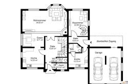 Die großzügige Doppelgarage ist direkt an das Haus angebunden und ermöglicht einen komfortablen Zugang zu den Wohnbereichen. Sie bietet ausreichend Platz für zwei Fahrzeuge sowie zusätzliche Lagermöglichkeiten. Die Dachfläche der Garage ist mit Bitumen eingedeckt und ist somit vorbereitet um als Terrassenbereich des angrenzenden Einliegertraktes zu diesen.