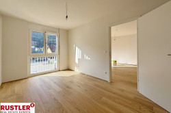 Über den Vorraum, vorbei beim Badezimmer mit walk-in Dusche und separaten WC, gelangen Sie in die großzügige, offene Wohnküche mit Ausgang auf den südseitigen Balkon und zu den beiden Schlafzimmer.
