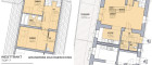 Erdgeschoß: Vorraum, 2 Abstellräume, WC, 1 Zimmer, Küche, Terrasse.