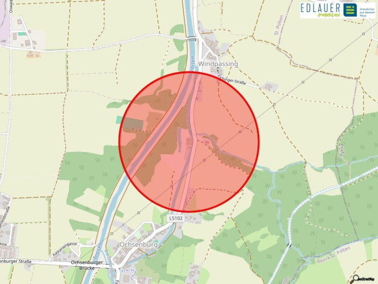 Die Wohnung befindet sich nur einige Autominuten von St. Pölten und St. Georgen entfernt, wo sich alle benötigten Nahversorger befinden. Ein Bus fährt vor dem Objekt regelmäßig über St. Georgen bzw. Harland ins Zentrum von St. Pölten. Die Wohnung liegt neben einem Bach und ist über eine kleine Brücke erreichbar. Richtung Westen bietet das Grundstück einen Ausblick über Teichanlagen und Waldflächen. Im Frühjahr 2015 wurde westlich eine biologische Anlage errichtet, welche es ermöglicht, Güter des täglichen Bedarfs, wie zum Beispiel Fisch, Fleisch, Gemüse zu erwerben oder auch ein eigenes Hochbeet anzumieten.