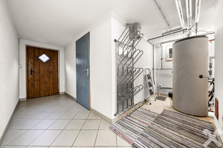Es ist voll unterkellert und verfügt über zwei Garagen. Unterhalb der Garagen befindet sich eine geräumige Werkstatt, die sich ideal für Handwerker oder Bastler eignet.