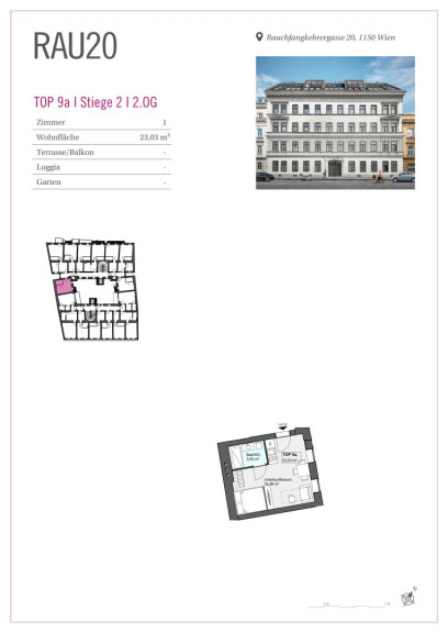 Das Gründerzeithaus in der Rauchfangkehrergasse 20 in unmittelbarer Nähe zu Schönbrunn besteht aus einem Straßen- und einem Hofgebäude. Die Liegenschaft wird umfassend saniert, durch eine Aufstockung ergänzt und mittels Dachbodenausbau erweitert. In den Regelgeschossen entstehen Serviced Apartments, deren Grundrisse gezielt auf die Anforderungen der Kurzzeitvermietung abgestimmt sind und die über eine Beherbergungswidmung samt rechtskräftiger Betriebsanlagengenehmigung verfügen. Die Dachgeschossbereiche werden als klassische Wohnungen ausgeführt.