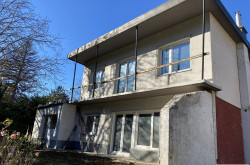 Auf dem Grundstück befindet sich derzeit ein entkerntes Bestandsgebäude. Fenster, Türen und die Dachhaut sind noch vorhanden, sodass das Haus trocken ist und ein solider Ausgangspunkt für eine Sanierung oder einen Neubau besteht.