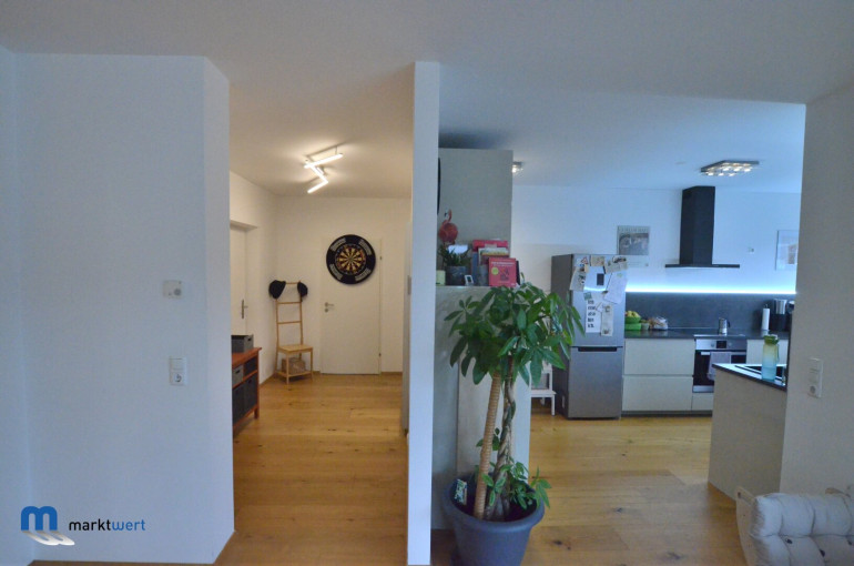 Die offene Wohnküche lädt zum Kochen und Verweilen ein. Hier können Sie kulinarische Köstlichkeiten zaubern und gleichzeitig Zeit mit Ihren Liebsten verbringen. Die angrenzende Loggia und Terrasse erweitern Ihren Wohnraum nach außen und bieten Ihnen die perfekte Möglichkeit, die frische Luft und die Sonne zu genießen. Stellen Sie sich vor, wie Sie an warmen Sommertagen auf Ihrer Terrasse entspannen oder gemütliche Abende mit Freunden verbringen.