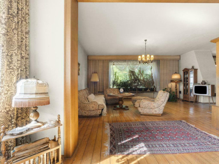 At the heart of the estate lies the main residence, consisting of an older section likely dating back to the 18th century and an extension added in 1970. Inside, traditional wooden windows in the Viennese box-frame style, an open fireplace in the living room, and several individual stoves reflect the quality craftsmanship of the time. Additionally, an oil central heating system has been installed, with the boiler housed in a nearby outbuilding. The main residence offers approximately 380 m² of usable floor space and provides a refined, partially nostalgic living atmosphere.