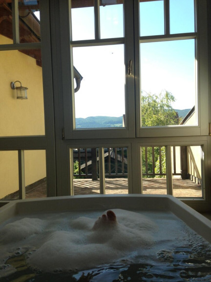 Parkett, Fliesen, Solarenergie, Fußbodenheizung, Einbauküche, Badewanne, Dusche