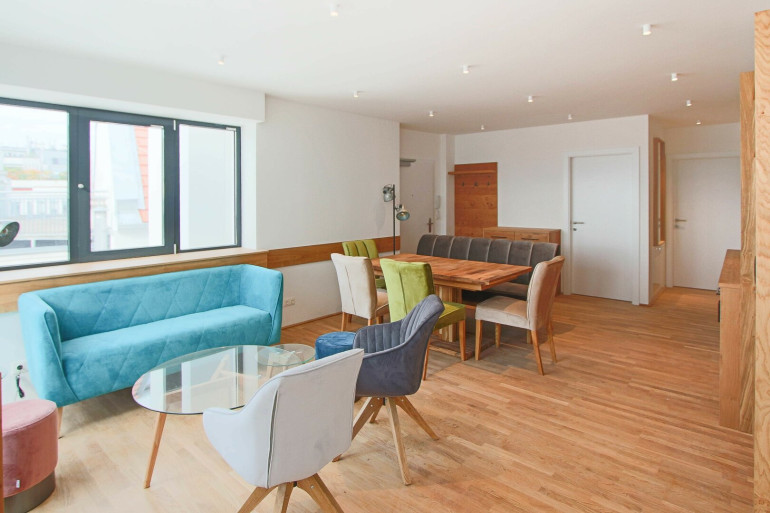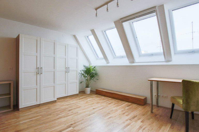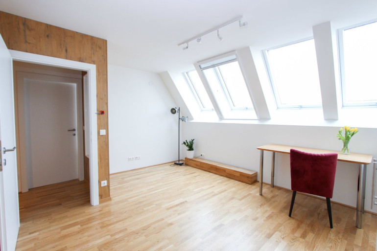 In einem modernen Dachgeschoß befindet sich eine Wohngemeinschaft mit insgesamt 7 Zimmer.