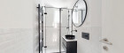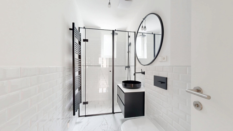 - Möbliertes Tageslicht-Badezimmer mit Dusche, Handtuchheizkörper und WC