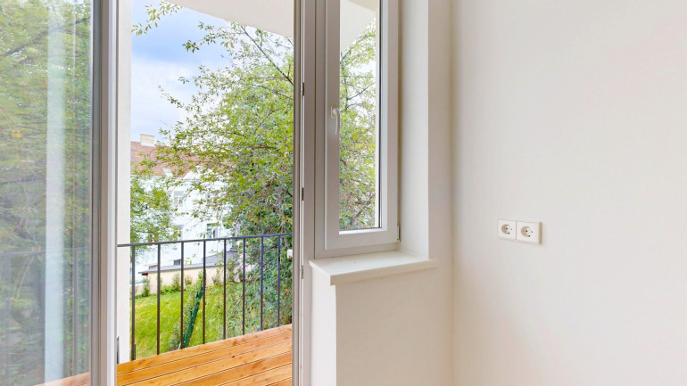 - Ostseitig ausgerichteter Balkon mit Blick ins Grüne