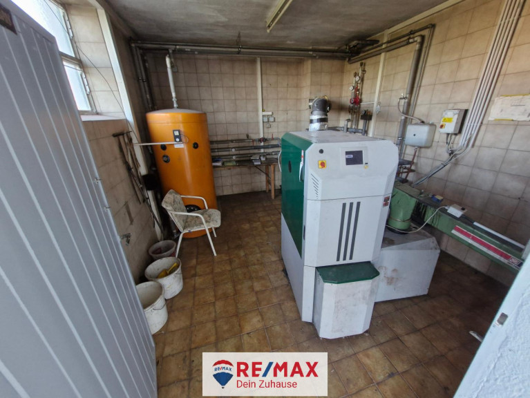 Im Stall 19 x 30 m befinden sich im Erdgeschoss der Hackschnitzel Speicher, von welchem durch Förderschnecke die Hackschnitzel in den