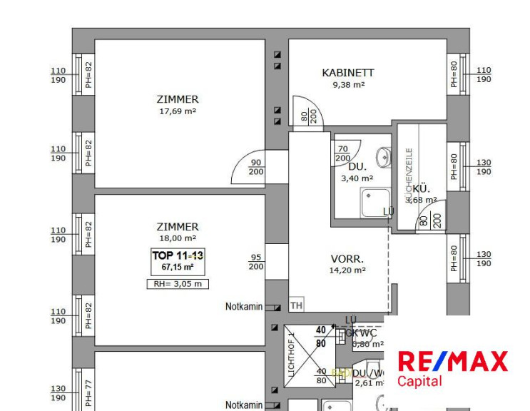 Das Objekt verfügt über drei helle Zimmer – zwei davon eignen sich ideal als Schlafzimmer oder Homeoffice. Der Wohnbereich ist lichtdurchflutet und schafft durch hohe Fenster eine freundliche Wohnatmosphäre. Die separat gelegene Küche bietet ausreichend Platz für kulinarische Entfaltung. Das Badezimmer ergänzt den funktionalen Grundriss. Zudem gibt es noch ein separates WC in der Wohnung.
