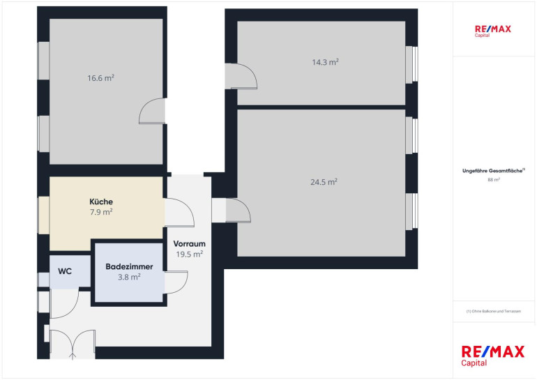 Auf ca. 88 m² Wohnfläche erwarten Sie zwei ruhige Schlafzimmer, ein charmantes Wohnzimmer sowie eine separate Küche mit ausreichend Platz für kulinarische Ideen. Ein zentral gelegener, großzügiger Vorraum verbindet die Räume miteinander und vermittelt ein herrschaftliches Wohngefühl. Das Badezimmer ist mit einer Badewanne ausgestattet, zusätzlich zum WC im Badezimmer gibt es ein zweites separates WC.