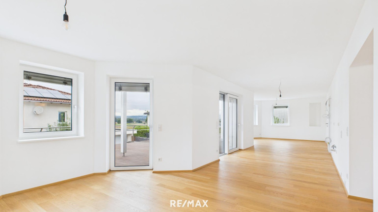 * großer Wohn-Ess-Küchenbereich mit Ausgang auf die 92 m2 Terrasse.