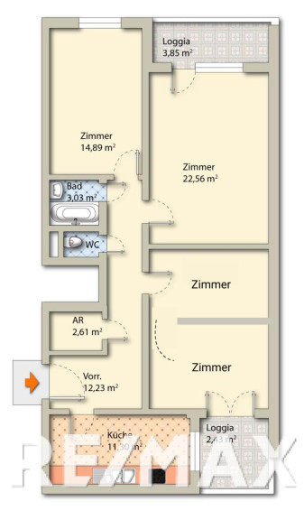 - Zwei Loggien (jeweils hofseitig und straßenseitig)