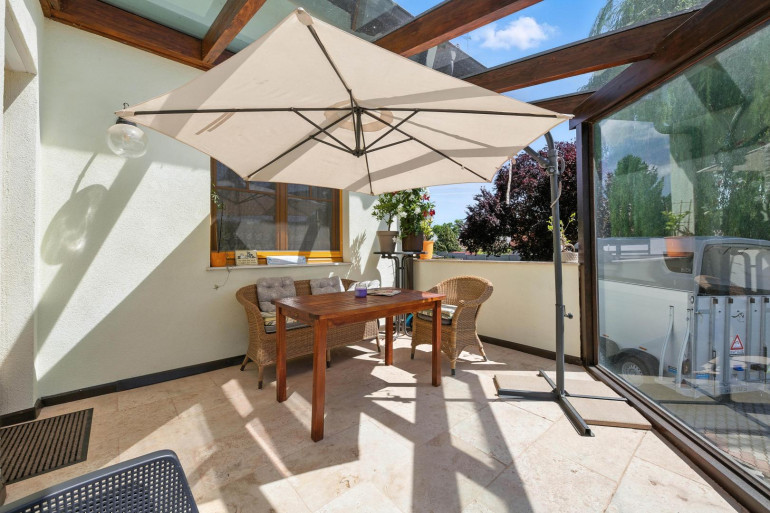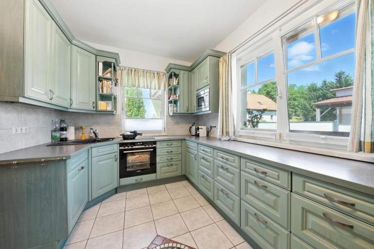 Ein weiteres absolut unvergleichbares Highlight, welches diese einzigartige Liegenschaft bietet, ist der vielfältige Garten, dessen Grünbestand liebevoll gepflegt sowie durch zahlreiche Neupflanzungen ergänzt wurde, um ein ästhetisches Ambiente zu erschaffen. Das Haus wird mittels einer Ölheizung-Fußbodenheizung zentral beheizt, alternativ bietet auch der vorhandene Kachelofen im Wohnzimmer behagliche Wärme. Sämtliche elektrische Anschlüsse und Installationen entsprechen dem Stand der Technik. Klimageräte für den Wintergarten, das Wohnzimmer, das Büro und das Schlafzimmer ergänzen das technische Angebot im Innenbereich. Zusätzlich vervollständigen das elektrische, ferngesteuerte Einfahrtstor und die Wegbeleuchtungen das technische Angebot im Außenbereich. Eine weitere Stärke dieser Liegenschaft ist die Flächenwidmung, da das gesamte Grundstück eine Bauland-Wohnen Widmung aufweist.
