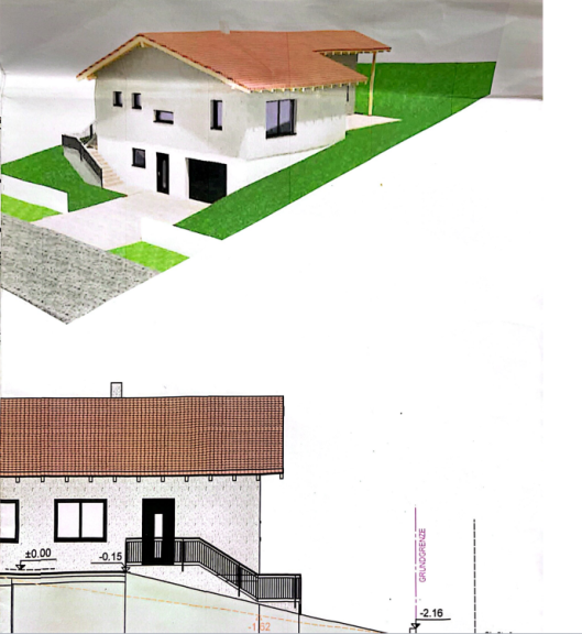 Baugrundstück mit Baubewilligung und Einreichplan für Einfamilienhaus, Garage und PKW Stellplatz