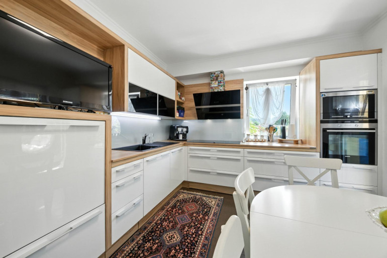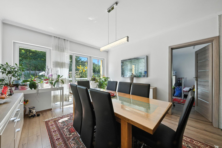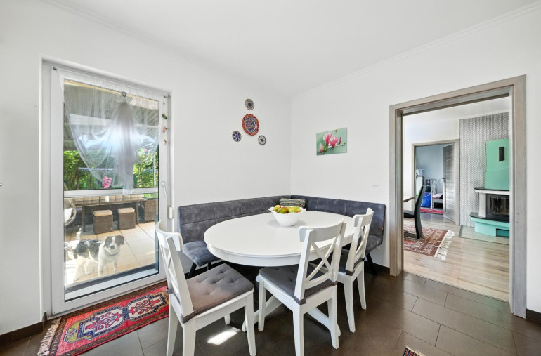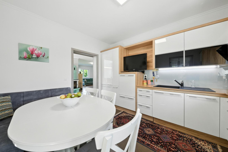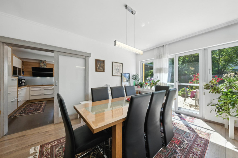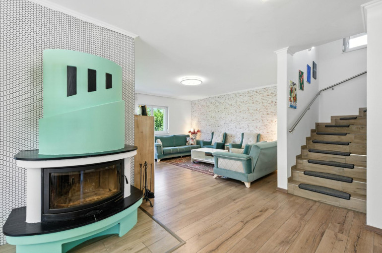 Der Kamin im Wohnzimmer, die moderne Küche, der sonnige Garten und die Sonnenterrasse schaffen ein Wohnumfeld der Spitzenklasse. Eine Luftwärmepumpe (Fußbodenheizung) sowie die Photovoltaik-Anlage sorgen zudem für die energieeffiziente Beheizung. Ein Brunnen liefert Wasser für die Gartenbewässerung.