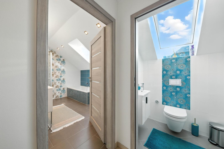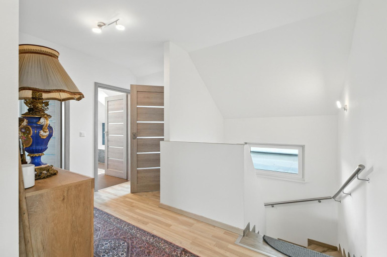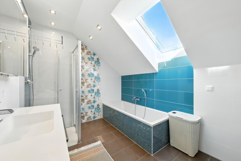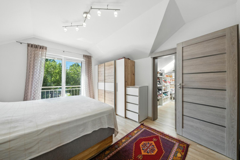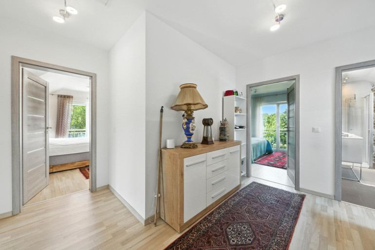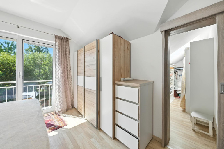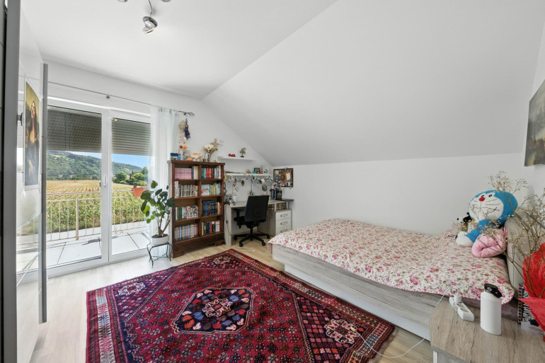 Der angenehme Wohn-Essbereich mit moderner Küche überwältigt mit seinem Charme und bietet einen entspannten Blick auf den einzigartigen Garten sowie die Terrasse. Des Weiteren sorgen die großen Fenster für ein freundliches und helles Ambiente. Ebenfalls auf dieser Etage befinden sich ein Gästezimmer, eine Toilette sowie der einladende Eingangsbereich und ein Abstellraum. Ein weiteres Highlight dieser Immobilie ist die Einzelgarage mit dem Lagerraum und direktem Hauszugang. Im Obergeschoss befinden sich ein Badezimmer mit Toilette, ein Balkon sowie vier Schlafzimmer (wobei das Elternschlafzimmer eine integrierte begehbaren Garderobe und ein Badezimmer hat).