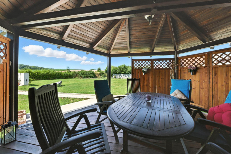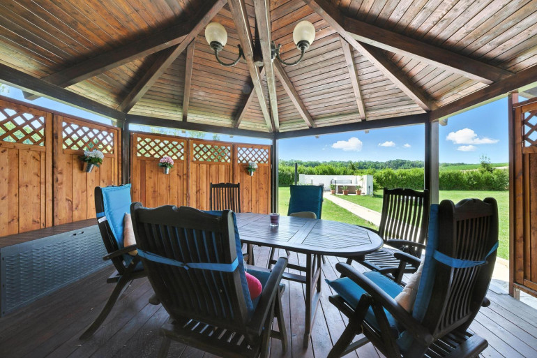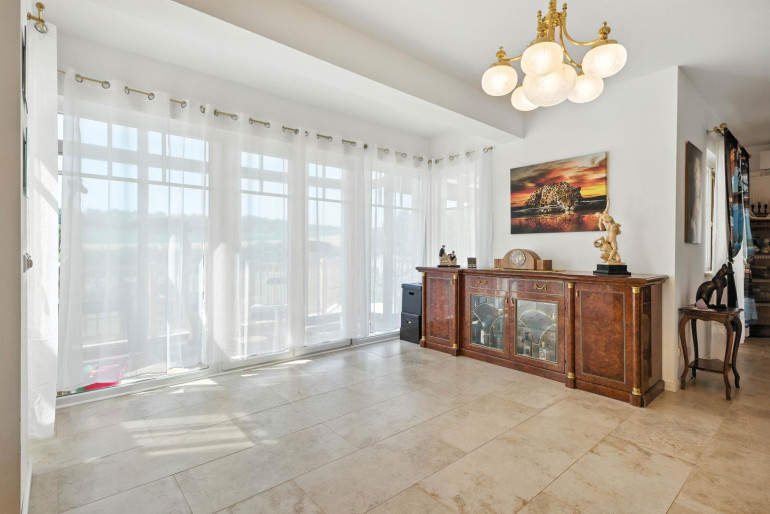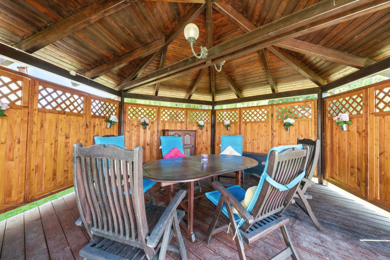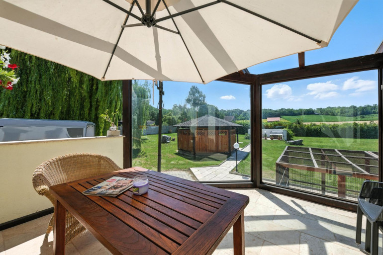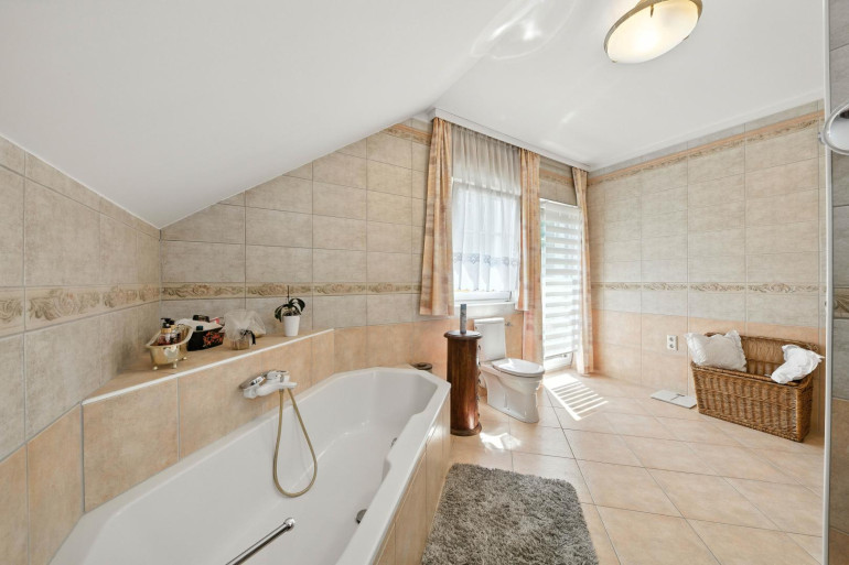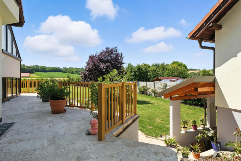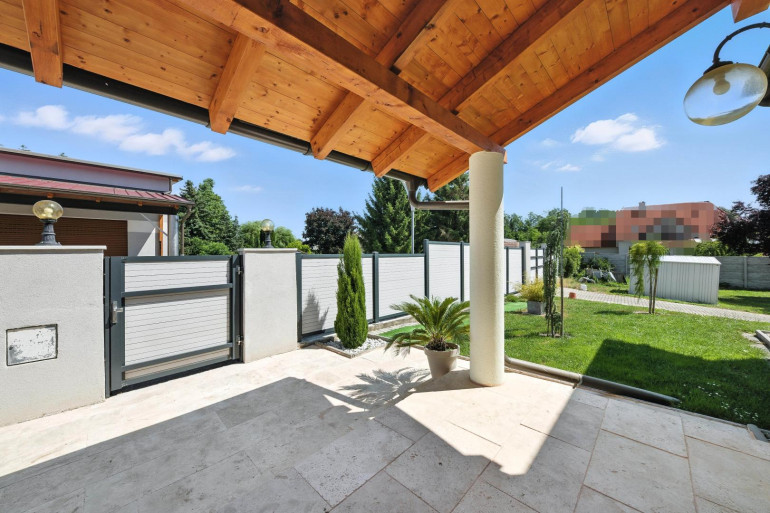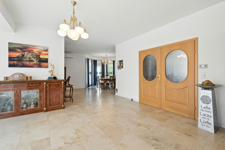 Special highlights such as the elegant stone floors in the outdoor area, the spacious terraces, the secluded garden, the saltwater whirlpool, and the custom-made sauna speak for themselves and underline the exclusive character of the property. Additional usable space is provided by approximately 100 m² of outbuildings such as a garage, carport, storage room/workshop, and garden pavilion. The spacious pavilion is perfect for relaxed barbecues with family and friends. Here, you can also make yourself comfortable on the adjoining sun terrace with a glass of wine and enjoy the peace and quiet of your peaceful living paradise.