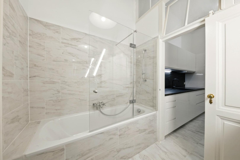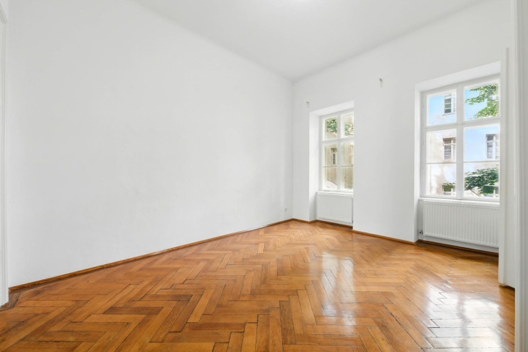 The furnishings combine classic old building elements with high-quality renovations: star parquet floors, elegant double doors, and marble floors in the entrance area give the apartment its historic character. The kitchen, bathroom, and toilet have been completely renovated and brought up to modern living standards.
