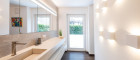 Das Hauptschlafzimmer ist ruhig gelegen, bietet auf ca. 25 m² viel Raum für Rückzug und wird durch ein eigenes Ankleidezimmer mit maßgefertigten Einbaukästen ergänzt. Das Badezimmer, welches sich im Hauptschlafzimmer befindet, überzeugt durch eine bodentiefe Dusche und natürlich einem WC uns einem einladenden Doppelwaschtisch. Das Gäste-Badezimmer – mit Tageslicht, einer ebenfalls bodentiefer, großer Glasdusche und einem Handwaschbecken mit neuem Spielgelvirtrinenschrank – folgt dem gestalterischen Anspruch der gesamten Wohnung: hochwertig, klar, unaufdringlich elegant.