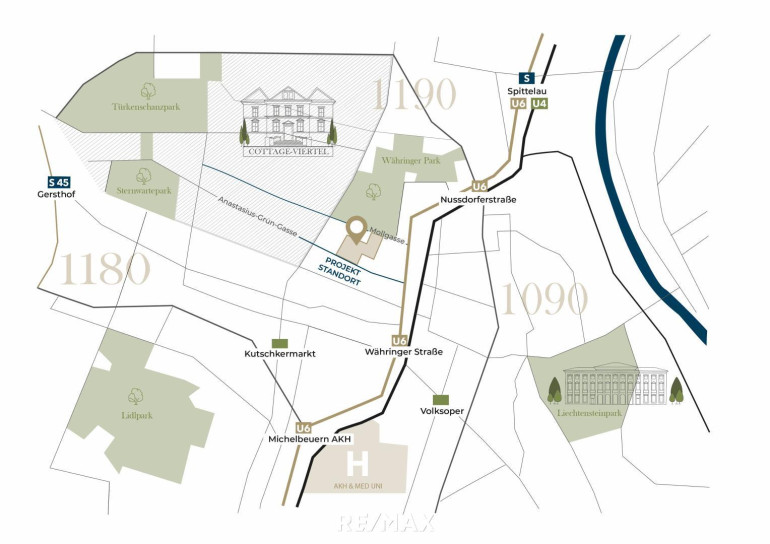 Die Lage überzeugt durch die tolle Infrastruktur und gleichzeitige Ruhe. Durch den Währinger Park ist ein ruhiges und angenehmes Wohngefühl garantiert. Gleichzeitig profitieren die Bewohner von der Nähe zu den U-Bahn-Stationen Nußdorfer Straße und Spittelau. Der nächstgelegene größere Supermarkt ist nur ca. 2 Fahrminuten entfernt. Dieses Wohnprojekt bietet nicht nur ein Zuhause, sondern auch eine grüne Wohlfühloase mitten in Wien.