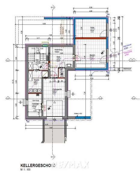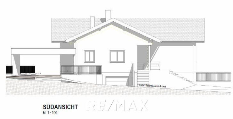 gartenseitigen ca. 28 m² großen Terrasse. Der Keller wurde mit einem Neubau um ca. 36 m² in Richtung Osten erweitert.