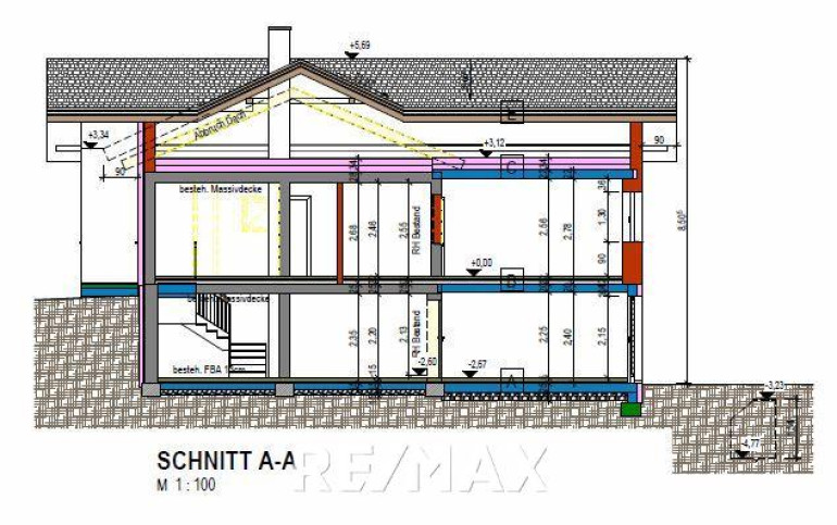Dieser Einfamilienhaus-Rohbau wurde auf einem ebenen Baugrundstück in Ziegelbauweise errichtet. Er besteht aus einem ca. 60 m² großen Bestandsgebäude mit Kellergeschoss aus dem Jahr 1960 und dem 2024 angebauten Neubau samt Keller auch im Ausmaß von jeweils ca. 60 m². Der Rohbau ist inklusive Zwischenwände fertiggestellt. Die Außenwände des Bestandes wurden mit 30 er Ziegeln gemauert, die des Neubaues mit 50 cm Ziegel. Das mit Tondach-Ziegeln gedeckte Walmdach wurde bereits fertig gestellt.