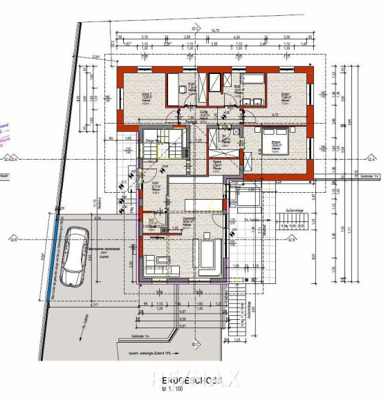 • Fenster: Hochwertige Internorm-Kunststoff-Fenster, innen weiß, außen Alu in anthrazit