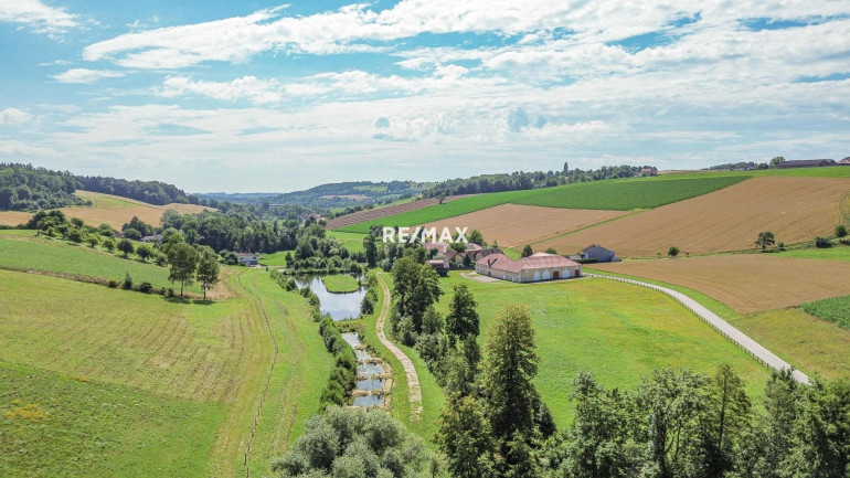 Dieser einzigartige Gutshof in einer ländlich geprägten Ortschaft im Bezirk Grieskirchen, vereint außergewöhnliches Wohnen, Arbeiten und Feiern an einem Ort. Eingebettet in einer Hügellandschaft mit Wiesen, Äcker und einer kleinen Nachbarschaft, bietet dieses Anwesen im Gesamtensemble auf ca. 11 Hektar Platz für vielfältige Nutzungsideen: vom Reiterhof über die professionelle Fischzucht bis hin zur exklusiven Hochzeits- oder Eventlocation mit Seminarbetrieb und Nächtigungsmöglichkeiten.