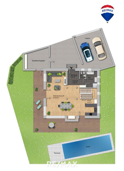 Der Außenbereich ist ein echtes Highlight: Ein großzügiger, beheizter Pool samt hochwertig sanierter Sonnenterrasse (2023) lädt zum Entspannen ein. Die Solaranlage sorgt für umweltfreundliches Heizen des Pools und ergänzt das nachhaltige Gesamtkonzept der Immobilie. Der liebevoll gepflegte Garten sowie eine überdachte Terrasse mit Blick ins Grüne runden das Angebot perfekt ab.